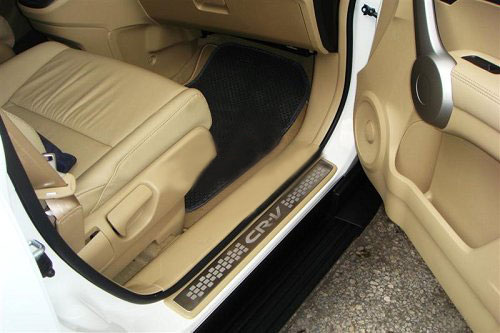 Накладки на пороги Honda CR-V III 2007-2012 г.в. — очень эффектный элемент интерьера. У любителей тюнинга он уже давно завоевал уважение и стал довольно популярным, несмотря на относительную новизну. Накладки не входят ни в одну штатную комплектацию этой марки автомобиля, что позволит Вам при их установке сделать авто более оригинальным и подчеркнуть свою индивидуальность как автовладельца. Кроме того, они оснащены дополнительными полосками, которые предотвращают скольжение ног по порогу. Размеры подобраны строго под модель автомобиля.