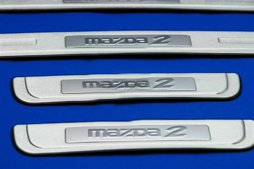 Накладки на пороги Mazda 2 усовершенствуют внешность автомобиля, придадут ему уникальность и неповторимость. При установки крепятся с помощью двухстороннего скотча.