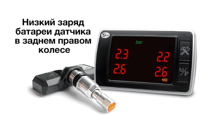Оповещение звуковым и световым сигналами. Когда давление и температура одного из колес выходит за установленные вами пределы, система предупреждает вас звуковым сигналом, а также подсвечивает цифру проблемного колеса на экране. Принцип работы: