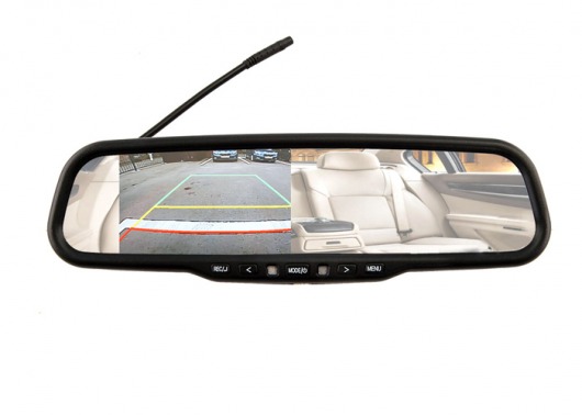 • Для удобной парковки к зеркалу с видеорегистратором и монитором можно подключить камеру заднего вида — картинка с нее будет выводиться на монитор, встроенный в зеркало. Видеовход стандарта CVBS позволит подключить к устройству любую парковочную камеру.
