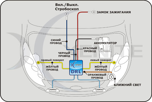 Вы сможете подключить к прибору стробоскопы. Они устанавливаются на бампер или за решетку радиатора автомобиля, а также в штатные фары транспортного средства. Вы можете использовать стобоскопы как специальные предупреждающие огни, а также в качестве защитного средства для езды в туман.