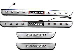 Светящиеся накладки на пороги Mitsubishi Lancer 9 - новый яркий элемент тюнинга. Накладки на пороги с подсветкой не входят ни в одну штатную комплектацию этой марки автомобиля. Они органично впишутся в салон Вашего авто, сопровождая каждое открытие двери теплым светом. Кроме того, оснащены специальными полосками, которые обеспечивают плотное соприкосновение ступни с порогом.  Просто подключаются к электрической системе автомобиля. В комплекте 4 шт.