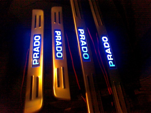 Светящиеся накладки на пороги Toyota Land Cruiser Prado 120 не входят ни в одну комплектацию этой модели автомобиля. Они органично впишутся в интерьер вашего автомобиля, дополняя светящиеся элементы панели управления, и позволят вам сделать свой автомобиль еще более оригинальным и стильным. Каждое открытие двери будет сопровождаться теплым синим светом. Кроме того, накладки оснащены специальными полосками, которые обеспечивают плотное соприкосновение ноги и порога.