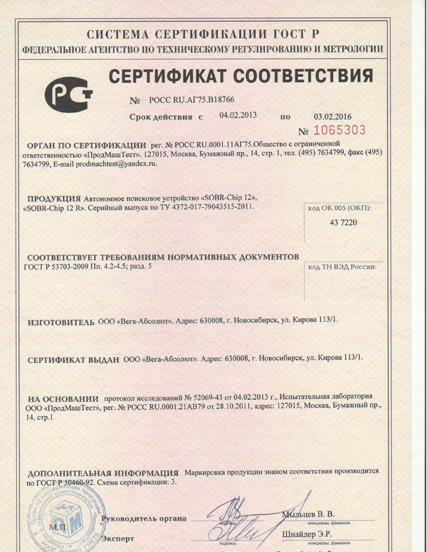 Автономное поисковое устройство SOBR-Chip 12 с новым GPS/ГЛОНАСС приемником работает независимо от сети (срок службы от 2-х литиевых батарей — до 2-х лет). Этот миниатюрный маячок вы можете спрятать в любом месте салона автомобиля или прикрепить его к ценному грузу, и прибор никак себя не выдаст. Поисковый маяк может принимать сигналы 2-х спутниковых систем ГЛОНАСС и GPS одновременно, и благодаря этому координаты будут определяться максимально быстро и точно даже в плохих условиях приема. И даже если сигналы от спутников будут недоступны, то приблизительное местоположение можно будет узнать по идентификаторам ближайшей базовой станции GSM на сайте онлайн-мониторинга.