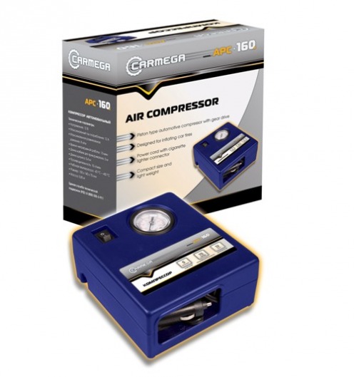 Автомобильный компрессор Carmega APC-160 обладая производительностью 15 л/мин и создавая максимальное давление в 8 атм., отлично справится с задачей поддерживать правильное давление в шинах любого легкового автомобиля как малолитражного городского хэтчбека, так и седана бизнес-класса.