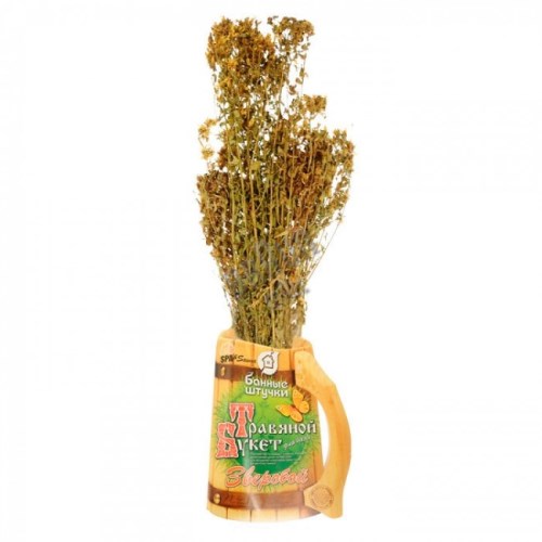 Травяной букет Зверобой для бани предназначен для использования в бане и сауне (при запаривании веников). Также настой из травы зверобоя можно лить на камни, лавки и полки. Трава зверобоя положительно действует на органы дыхательной системы и кожу, успокаивает нервы и заживляет раны. Ванны из зверобоя помогают при переутомлении.