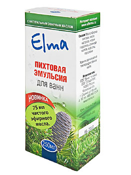 Пихтовая эмульсия — косметическое средство для ванн, заметно улучшает состояние кожи, подверженной целлюлиту, восстанавливает её упругость и тонус. Уменьшает эффект «апельсиновой корки» и не эстетичных жировых отложений, кожа становиться более гладкой и эластичной, наполняется жизненной силой.