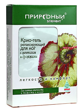 Релаксирующий крио-коктейль с ментолом и дрожжами Природный элемент эффективно снимает отечность и тяжесть в ногах. Гель расслабляет мышцы, создает ощущение приятной прохлады и дезодорирующий эффект. Оказывает смягчающее воздействие на кожу. Витамин РР, содержащийся в дрожжах, улучшает микроциркуляцию, снимает отечность.