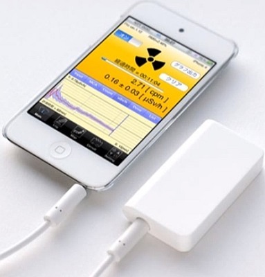 Индикатор радиоактивности, работатающий с Iphone/ Ipad/ Ipod, подходит для индивидуального использования. Подключение к мобильному гаджету осуществляется напрямую через аудиоразъем. Результаты измерений можно привязать к карте местности с последующим отображением. Также дозиметр питается от устройства и не требует батареек или аккумулятора.
