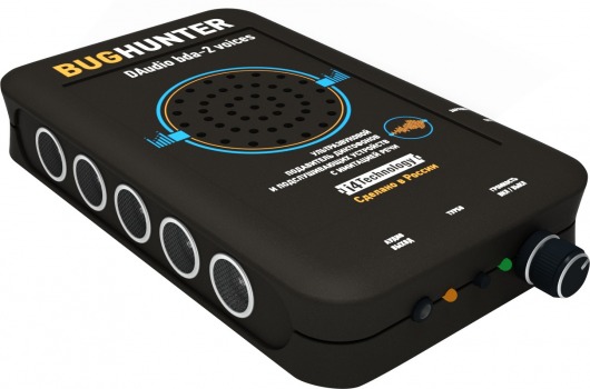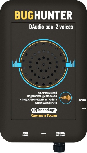 Детектор микрофонов, диктофонов и подслушивающих устройств BugHunter DAudio bda-2 Voices создан для защиты от прослушивания всеми известными типами микрофонов (радио, проводными и лазерными). Для блокировки сигнала использует ультразвуковой излучатель (бесшумный способ) и акустический речеподобный глушитель. Возможна работа в турбо режиме для максимально эффективных помех.
