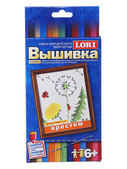 В набор для вышивки крестом "Одуванчики" входит ткань с нанесенным рисунком, нитки для вышивания, игла для вышивания и инструкция.