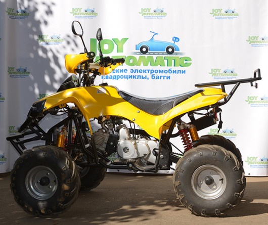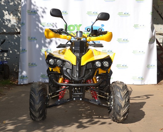 Бензиновый квадроцикл Joy Automatic LMATV-110E – это полноценное мощное транспортное средство с автоматической коробкой передач, которое способно развивать скорость до 60 км/ч за счет четырехтактного бензинового двигателя объемом 110 см³. Квадроцикл оснащен задним багажником, светящимися фарами, зеркалами заднего вида, специальной защитой рук и передним бампером, который защитит водителя от летящих из-под колес песка, грязи и гравия. Есть пульт дистанционного управления, с помощью которого можно в том числе активировать функцию сигнализации.