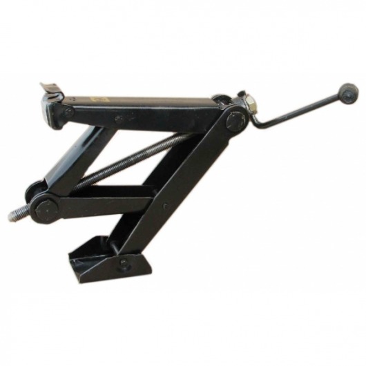 Механизм автомобильного домкрата: рычажно-винтовой. Несущие элементы: силовой винт и 2 рычага. На нижнем шарнирно закреплен упор для винта и опорная площадка, а на верхнем - подхват и гайка винта. Когда вы вращаете приводную рукоять, угол между рычагами увеличивается, расстояние от опорной площадки до подхвата тоже увеличивается, и за счет этого происходит подъем. Максимальная грузоподъемность модели: не более 800 кг.