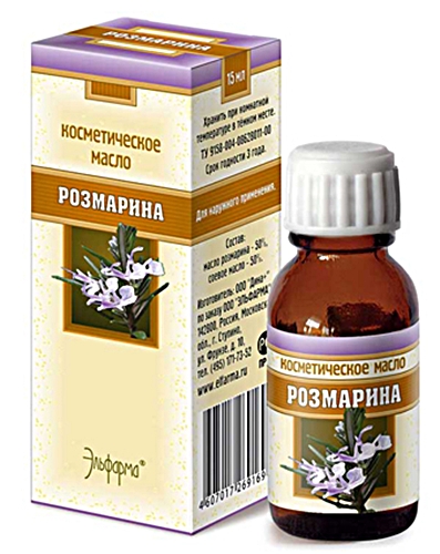 Состав косметического масла: равные части эфирного масла розмарина и соевого масла. Оно легкое, илетучее, с приятным пряным запахом.