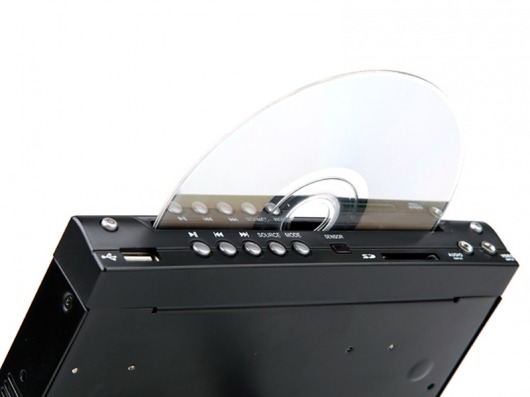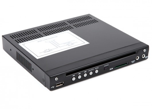 Эта модель имеет очень миниатюрные размеры – всего 50 мм толщиной. Благодаря этому, компактный прибор можно установить, не причинив ущерба другому автомобильному оборудованию. По своему желанию, монтировать проигрыватель можно в закрытом или открытом виде. Также во время установки вы сами выбираете наиболее удобное для вас положение устройства: вертикальное или горизонтальное. Вы даже можете поместить проигрыватель в бардачок! В любом случае, куда бы вы его ни установили, картинку можно вывести либо на потолочный монитор, либо на дисплей.