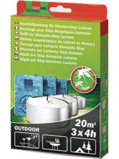 Запасной набор для отпугивателя комаров SWISSINNO Mosquito Stop Lantern включает в себя 3 пластины с репеллентом и 4 свечки. Срок действия одной пластины — 4 часа, а значит, одного такого набора вам хватит на 12 часов спокойного отдыха на природе без комаров.