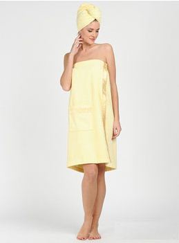 Женский набор состоящий из порео и полотенца, важный атрибут при посещении бань, саун и бассейнов, особенно общественных. Порео  оснащено резинкой-липучкой для надежной фиксации на груди и регулировки размера. Его можно использовать и как домашнюю одежду.