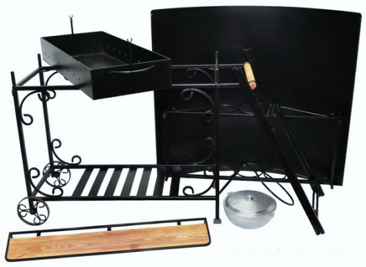 Это профессиональный мангал для дачи, в котором заранее предусмотрены некоторые приспособления, которые вам обязательно пригодятся в процессе приготовления шашлыков (и не только):