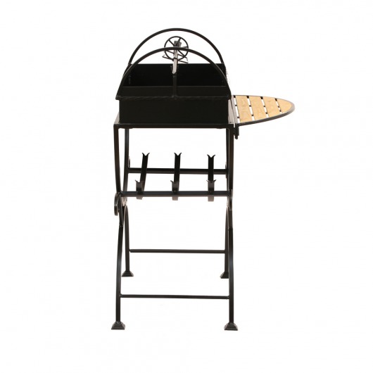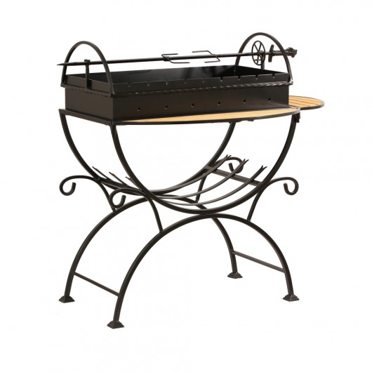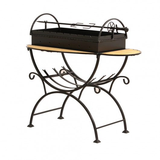 И это не единственные преимущества дачного кованого мангала МСД. Несмотря на изящность и компактность, его конструкция отличается особой прочностью. Стойка усилена элементами ручной ковки, а ящик мангала изготовлен из цельного листа жаростойкой стали толщиной 2 мм на гидравлическом прессе. Такая жаровня выдерживает высокие температурные нагрузки в течение долгого времени и не деформируется. А спереди и сбоку жаровни расположились 2 удобных деревянных столика (один из них съемный), которые можно использовать как подставки для посуды или вместо разделочных досок.