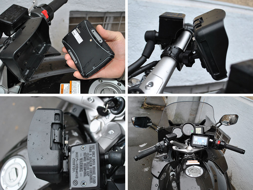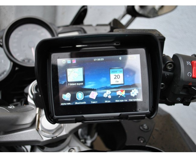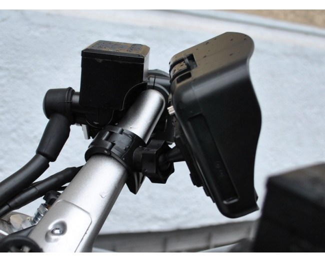 В комплекте поставки есть удобное крепление для быстрой установки навигатора на мотоцикл. Оно не требует никаких доработок, монтаж происходит одним движением руки. Питание подведено к держателю, поэтому gps навигатор не разрядится в пути. Дополнительно у модели есть и аккумулятор для автономной работы.