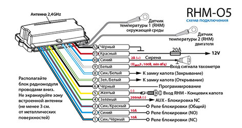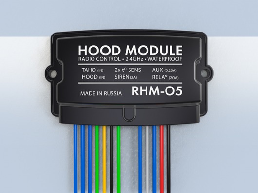 Для современных машин с цифровой шиной все агрегаты установлены очень плотно, поэтому протяжка проводов в подкапотное пространство – очень сложная и даже небезопасная задача. Ведь в процессе вы можете повредить такие системы, как рулевое управление, тормозную систему и прочее. Если же вы используете во время монтажа модуль RHM-05, вам не нужно протягивать провода под капот. Прибор обеспечивает коммутацию нужных цепей и передачу статусной информации и команд от основного блока по радиоканалу на 2,4 GHz.