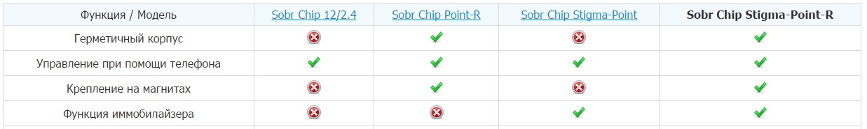 Сравнительная таблица GSM-маяков Sobr Chip