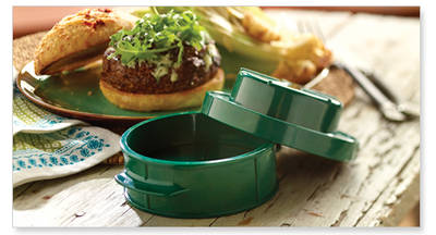 С таким керамическим прессом готовить гамбургеры легко и просто. Эта мини-сковорода подходит для любых грилей Big Green Egg и запросто справляется с любым мясом — свининой, говядиной, бараниной, курицей или индейкой, в нем даже можно делать вегетарианские бургеры.