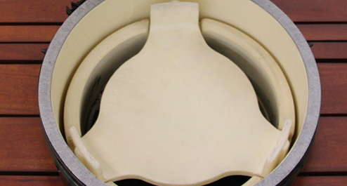 Чтобы использовать гриль Big Green Egg Small для томления или запекания блюд на непрямом огне, необходим керамический рефлектор. Он отсекает от продуктов огонь, исходящий от углей, и превращает гриль в печь. Используйте рефлектор совместно с гриль-решетками.
