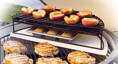 Дополнительная чугунная решетка в форме полумесяца с поддоном предназначена специально для керамических грилей Big Green Egg Medium. Используйте ее совместно с круглой решеткой — так вы сможете создать "второй" уровень, чтобы увеличить полезную площадь гриля. Полукруглую решетку можно также комбинировать с керамическим камнем для выпечки в форме полумесяца.
