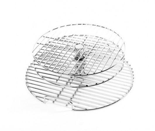 Такая трехуровневая решетка из хромированной стали для керамических грилей Big Green Egg Large придет на помощь, если вам нужно быстро приготовить несколько разных блюд и накормить большую семью или компанию друзей — эта решетка в 3 раза увеличит полезную площадь гриля. За счет того, что решетка разбирается, ее удобно хранить и мыть (можно и в посудомоечной машине). 2 верхних яруса вращаются.