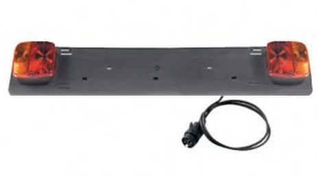Держатель номерного знака с дополнительными фонарями для велокреплений. Основное назначение данного приспособления - держать велокрепление на заднюю дверь автомобиля в том случае, если оно закрывает номерной знак. Если у автомобиля выведена розетка для фаркопа (7-PIN), тогда есть возможность подключения фонарей. Крепится двумя ремешками на велокрепление. Длина провода 1,5 м.