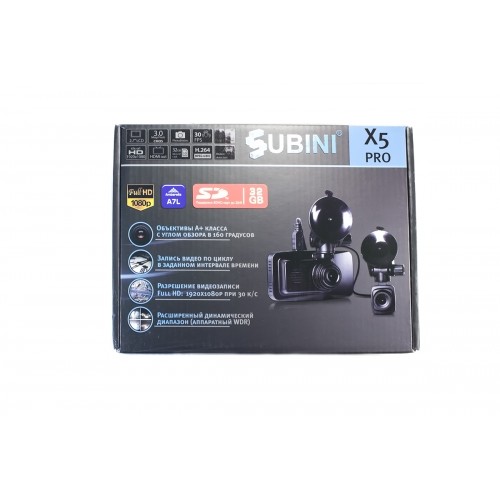 Subini X5 Pro - видеорегистратор с дополнительной камерой, благодаря которой полученная запись станет эффективной доказательной базой в любых сложных обстоятельствах. Разрешение съёмки Subini X5 Pro - Full HD 1920x1080 при 30 кадрах/с. с обеих камер. Дополнительная камера, снимающая с разрешением Full HD, сможет создать качественное изображение в любое время суток. Широкоугольный объектив в 160 градусов захватит даже самые незначительные мелочи на трассе. Просмотреть записи возможно на 3-дюймовом TFT дисплее.