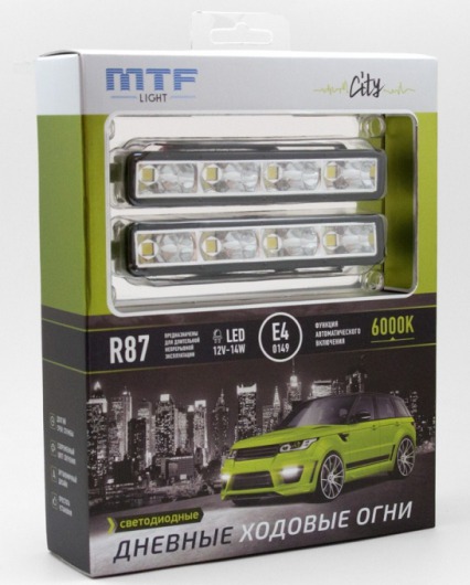 Прибор оборудован  функцией автоматического включения, что позволяет активировать освещение при повороте ключа в замке зажигания. Также данное устройство оснащено функцией автоматического отключения при включении ближнего света. Огни MTF Light  City обладают оригинальным дизайном и улучшают внешний вид автомобиля. Модель полностью соответствуют ГОСТ.