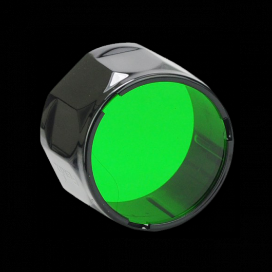 Светофильтр Fenix AD302-G работает по принципу насадки и подходит для фонарей, у которых диаметр головной части равен 34 мм. К их числу относятся модели TK11, TK12, TK15, TK20. Фильтр позволяет получить луч зеленого света даже для тех фонарей, у которых данная функция изначально не заложена. Свет в зеленом спектре особенно ценится среди охотников, поскольку позволяет человеку получить преимущество перед животными и птицами, которые плохо видят в таком свете. Зеленый фильтр помогает охотнику различать больше деталей окружающей среды в темноте. В то же время, такой свет не слепит и не нарушает ночное зрение человека.