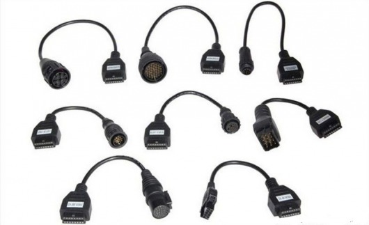 Комплект неоригинальных кабелей-переходников для подключения современных диагностических средств OBD2 к грузовым автомобилям со старыми, отличными от OBD2 колодками. Благодаря этим переходникам появляется возможность использования всего спектра разнообразных диагностических сканеров на старых автомобилях. Подходят к автосканеру Autocom Trucks