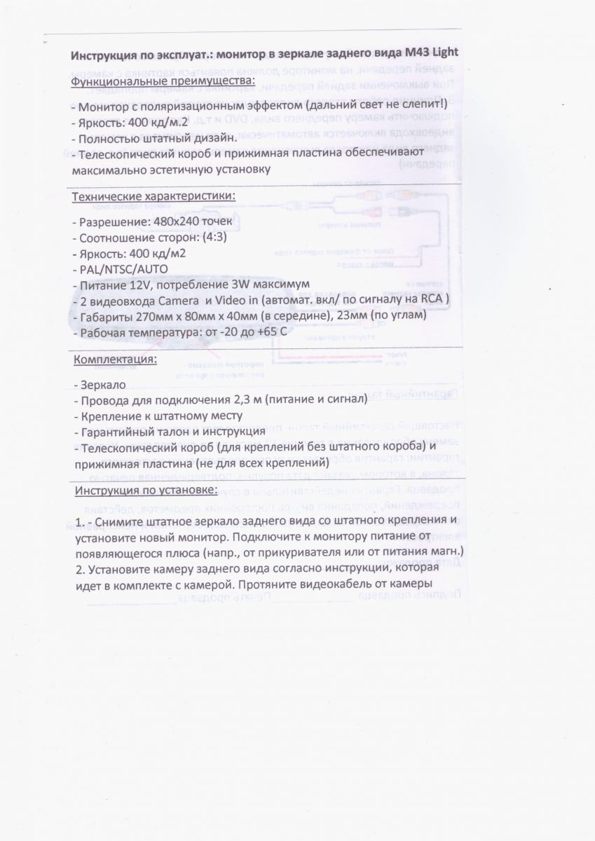Другие особенности внутрисалонного зеркала с монитором Redpower M43 Light: