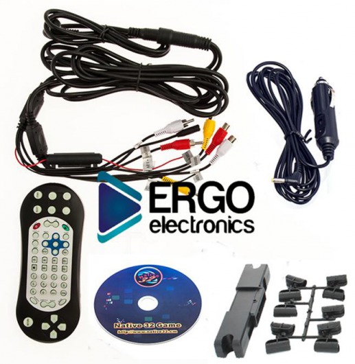 Установка монитора ERGO ER10VS предельно простая, производится на металлические опоры штатного подголовника с помощью специального крепления (входит в комплект). Не забыл производитель ERGO и про детей, традиционно укомплектовав монитор на подголовник джойстиком и DVD-диском с играми.