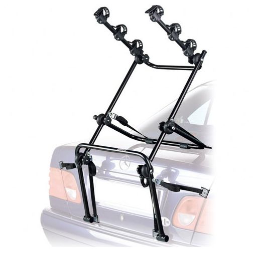 Велокрепление на заднюю дверь PERUZZO New Hi-Bike — универсальный багажник для перевозки 3-х велосипедов с закрытой рамой, который крепится при помощи ремней к задней двери автомобиля. Если же вам требуется перевезти велосипед с открытой рамой, то необходимо использовать адаптер PERUZZO PZ 395. Велосипеды фиксируются к автомобилю за раму при помощи специальных ремней безопасности.