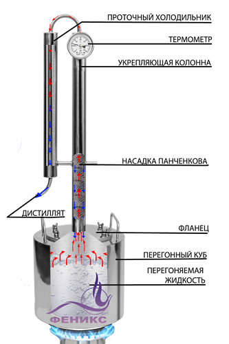 Укрепляющая колонна заполнена специальной сеткой (Регулярной Проволочной Насадкой Панченкова (РПН Панченкова), которая используется в дистилляторах и ректификационных колоннах для увеличения степени очистки и позволяет получить более чистый продукт, фильтруя пары спирта и отсекая сивушные масла от различных примесей.