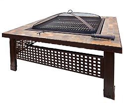 Благодаря мангалу данный очаг станет не только красивым украшением сада, но и практичным приспособлением для готовки блюд на свежем воздухе. Основная конструкция очага выполнена из стали, столешница изготовлена из натурально камня с мозаичным рисунком, основание очага украшено орнаментом художественной ковки. Очаг выпускается в двух цветовых вариантах: синяя и коричневая. При заказе укажите в поле над ценой необходимый вариант расцветки.