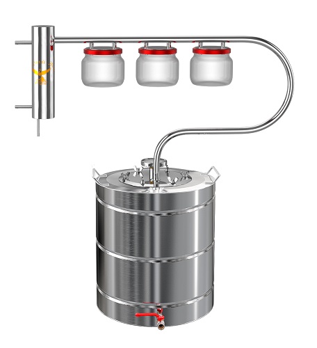 Самогонный аппарат Добрый Жар Луч - модель самогонного аппарата с тремя разборными сухопарниками. Наличие трех сухопарников позволяет получить на выходе чистейший самогон (максимально очищенный от сивушных масел), а за счет того что сухопарники разборные - в них можно заложить различные ингредиенты для ароматизации получаемого продукта.