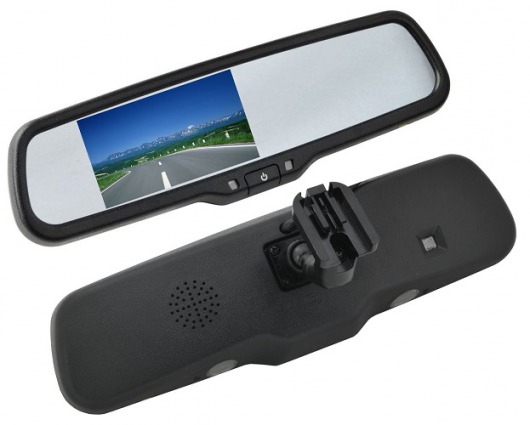 Салонное зеркало с монитором устанавливается вместо штатного зеркала заднего вида. Поэтому в выключенном состоянии прибор абсолютно не привлекает внимания воров и мошенников. Его установка займет всего несколько минут. В комплекте имеется специальный держатель, это крепление предназначено для установки на штатную площадку на лобовое стекло. Имеются все нужные провода для подключения к питанию.