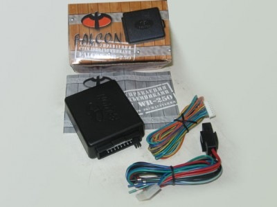 Доводчик на два стекла Falcon WR-250 одновременно закрывает два окна автомобиля при постановке его на охрану. До тех пор, пока на желтом проводе действует отрицательный импульс, стекло движется вверх. Отключаются двигатели стеклоподъемников в момент прекращения пульсации в цепи питания двигателя.