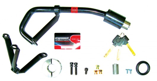 Рулевой блокиратор Sentry Spider очень удобен в применении. Достаточно вставить ключ в личинку и повернуть — и ригель запорного механизма надежно блокирует рулевой вал. При этом личинка замка располагается в доступном месте, а вам не нужен никакой штырь!