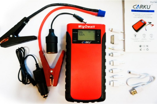 С его помощью можно запускать двигатель автомобиля или мотоцикла. При полной зарядке устройство гарантирует до 25 запусков.