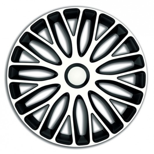 Диаметр автомобильных колпаков на колеса — 15 дюймов. Цвет: бело-черный.