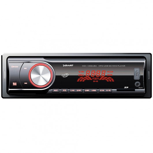 Автомобильная магнитола 1din Swat MEX-1006UBA – недорогое, но функциональное утройство. У MEX-1006UBA есть широкий набор мультимедийных технологий, которые позволяют выжать из устройства по максимуму. Ресивер способен выдавать звук на 4 колонки по 50 ватт. Есть возможность сохранения до 18 радиостанций на цифровом радио-тюнере. Кроме того, реализована возможность прослушивания аудиозаписей через карту памяти.