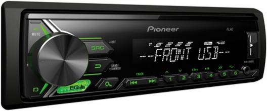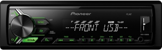 Автомобильная магнитола 1din Pioneer MVH-190UBG – очень функциональное утройство. У автомагнитолы есть широкий набор мультимедийных технологий, которые позволяют выжать из устройства по максимуму. Ресивер способен выдавать звук на 4 колонки по 50 ватт. Есть возможность сохранения до 18 радиостанций на цифровом радио-тюнере. Кроме того, реализована возможность прослушивания аудиозаписей через карту памяти или AUX.