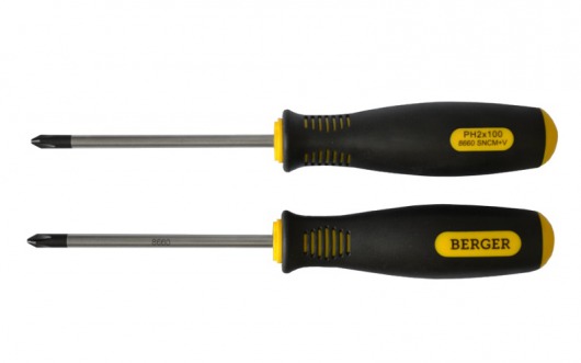 BERGER BG-06SS — это универсальный набор из 6-ти отверток с крестовыми наконечниками РН (Phillips) и прямыми наконечниками SLOT (шлиц). Отвертки изготовлены их прочной никель-хром-молибденовой стали марки AISI 8660, благодаря чему инструменты выдерживают продолжительные интенсивные нагрузки. А удобные резиновые рукоятки не скользят и абсолютно не деформируются при использовании.