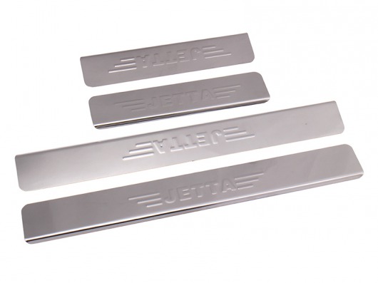 Внутренняя накладка на порог Volkswagen Jetta — это аксессуар автомобильного тюнинга, который защищает внутренний порог от механических повреждений при посадке и высадке из машины. Декоративные накладки с логотипом на внутренние пороги предназначены для автомобилей Фольксваген Джетта.
